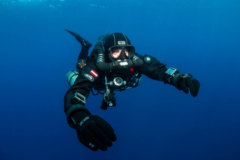 - Nass- oder Trockentauchanzug (Trilaminat ist zu bevorzugen)